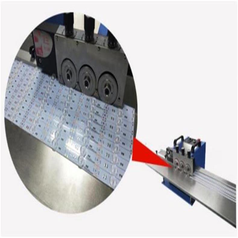 根據連板尺寸調節定位導軌,將要進行分切的V-CUT聯板的對準放板導軌,然后手推入刀口,滾刀自動帶走V-CUT連板帶走并分切,從而將多聯板V-CUT線路板分離