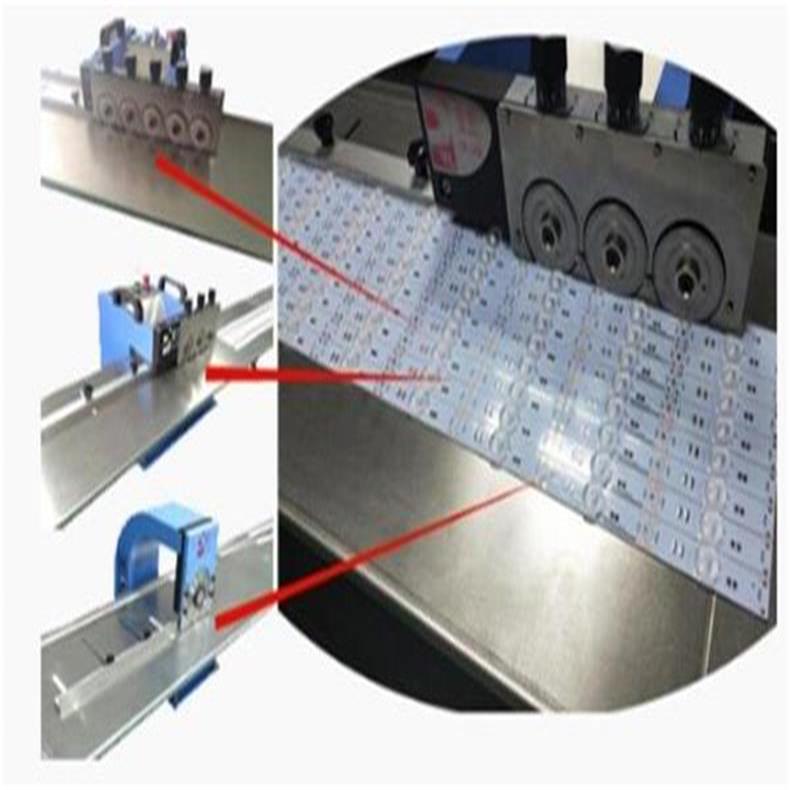 根據(jù)連板尺寸調節(jié)定位導軌,將要進行分切的V-CUT聯(lián)板的對準放板導軌,然后手推入刀口,滾刀自動帶走V-CUT連板帶走并分切,從而將多聯(lián)板V-CUT線路板分離。
