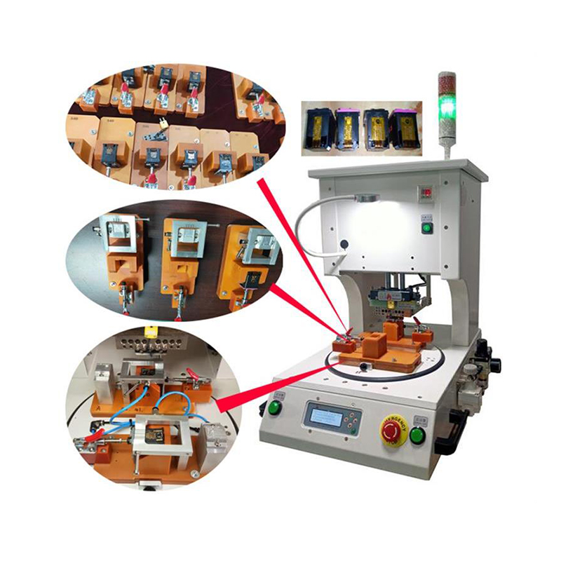 將工件置于夾具(如有需要,可啟動(dòng)真空將其固定)。將夾具送至焊接頭下,按雙開始鍵,焊接頭下壓著工件(開始加熱),溫度按輸入?yún)?shù)迅速上升及準(zhǔn)確恒溫,可達(dá)4個(gè)溫區(qū)(此時(shí)焊錫回流),吹氣冷卻(焊錫凝固),焊接頭上升(完成)。